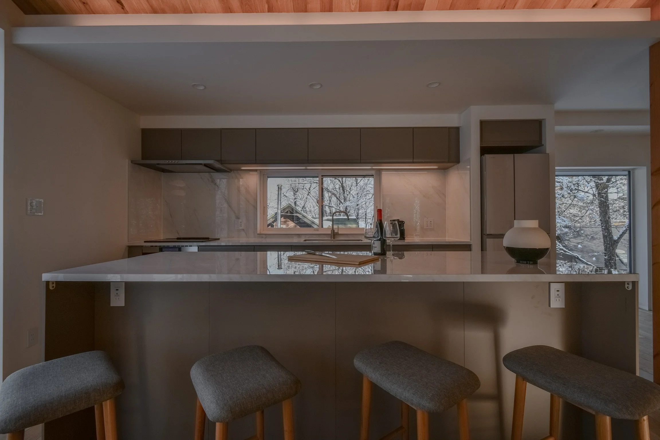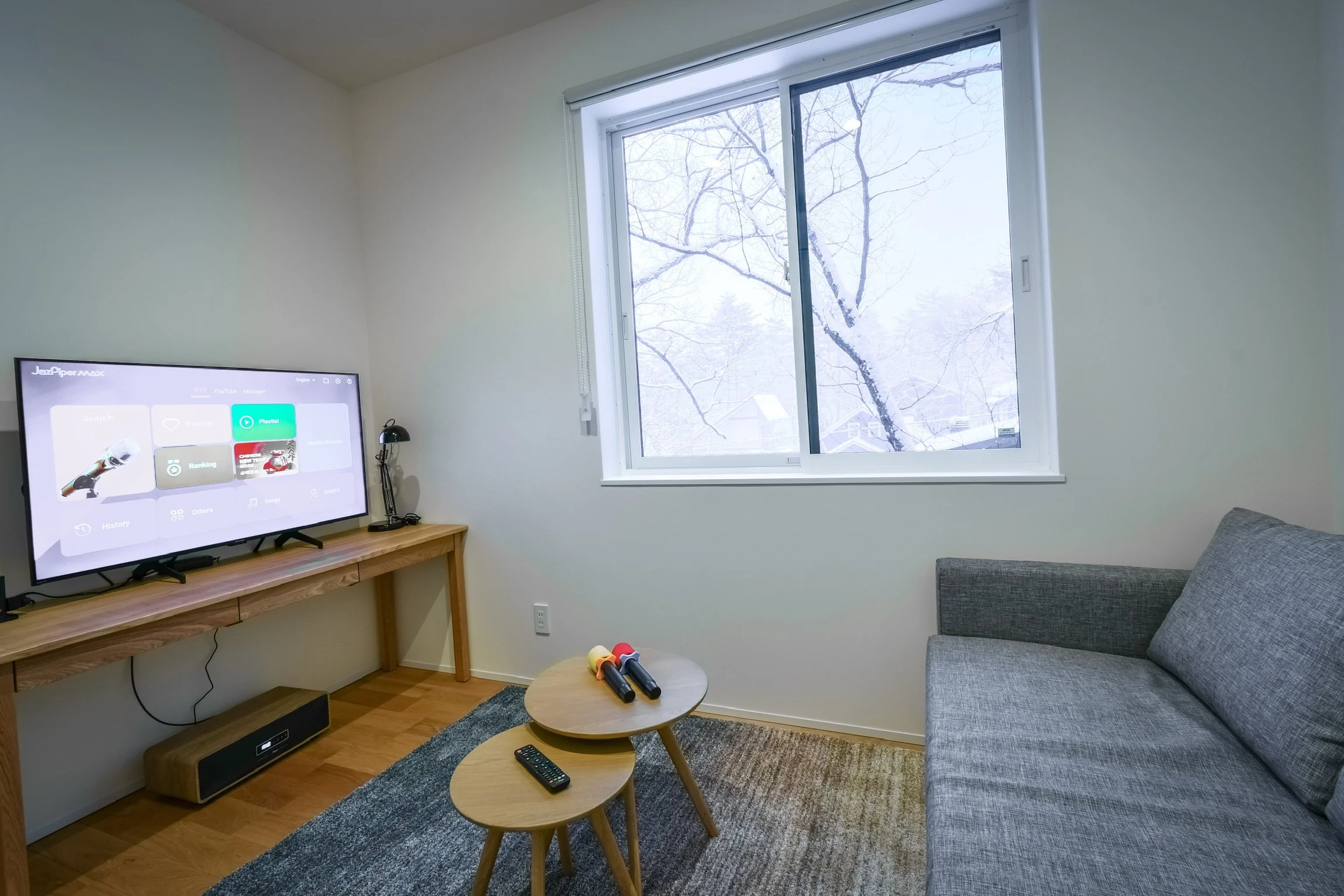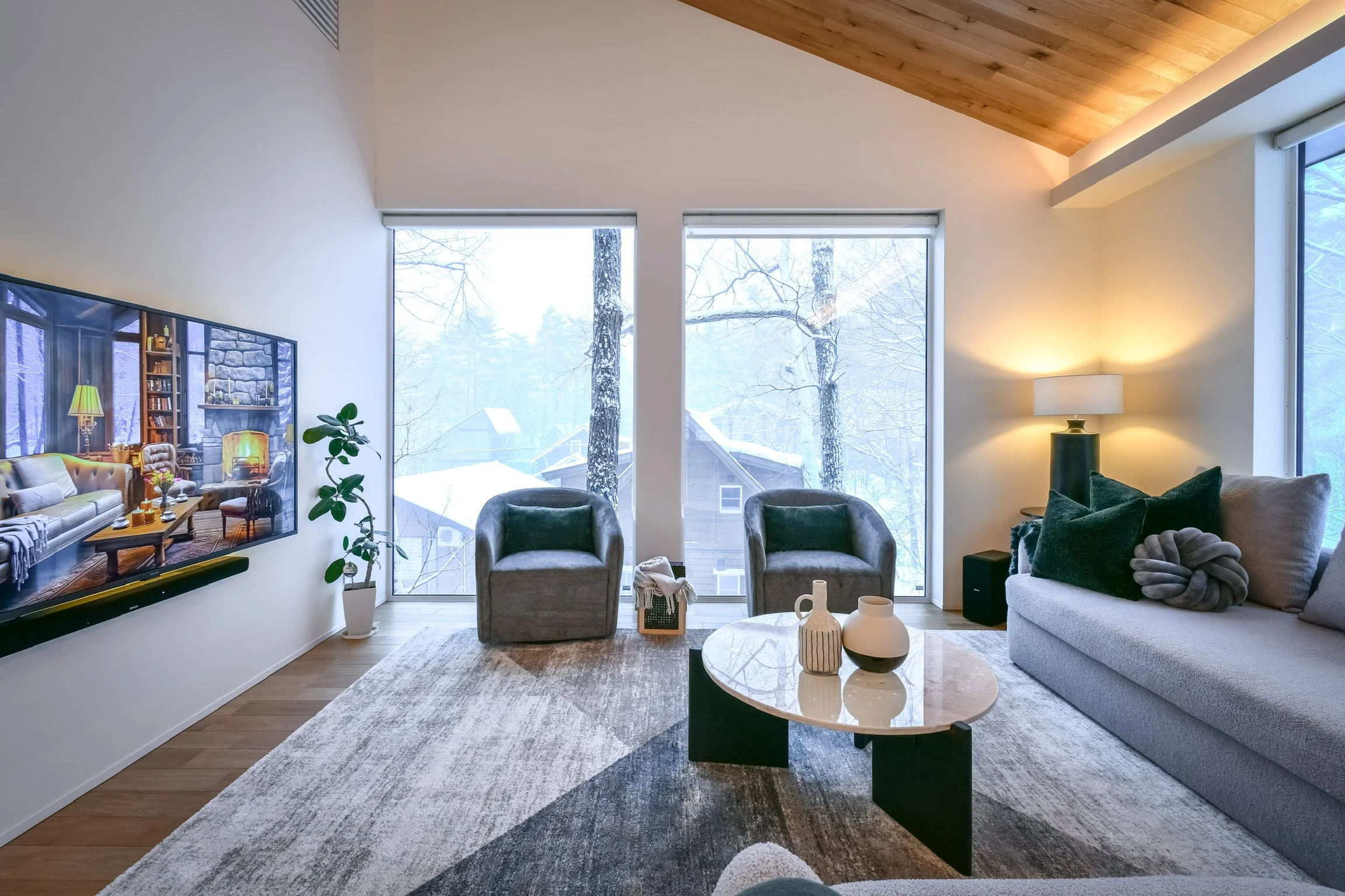 The heart of Chalet Hikaru is its expansive open-plan living space, designed to showcase stunning mountain views. Bathed in natural light, it creates a warm and inviting atmosphere throughout the day. Equipped with immersive sound systems and thoughtfully designed Japanese–Scandinavian interiors, the living area is the perfect setting for both lively gatherings and quiet moments of relaxation.