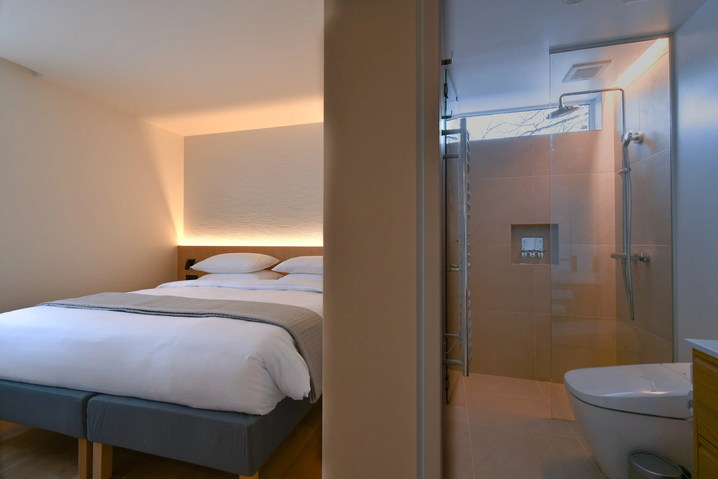Indulge in the ultimate relaxation with an authentic Japanese ofuro bath, the perfect way to rejuvenate after a day on the slopes. Complementing this are 6 modern showers and 5 toilets, ensuring privacy and convenience for all guests. Every ensuite bedroom has been thoughtfully designed with comfort and functionality in mind.