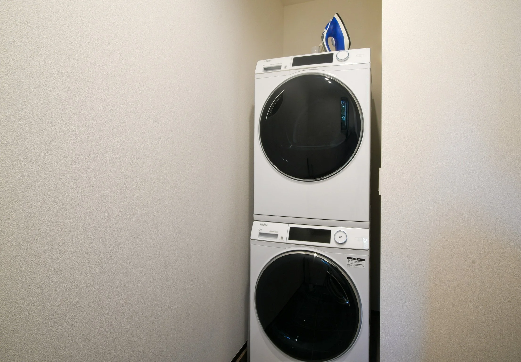 The kitchen is fully equipped with the latest appliances, including an induction cooktop, a combination microwave/oven, and a large fridge/freezer. There are also a wide range of smaller appliances such as a rice cooker, a coffee maker, a kettle and a toaster.