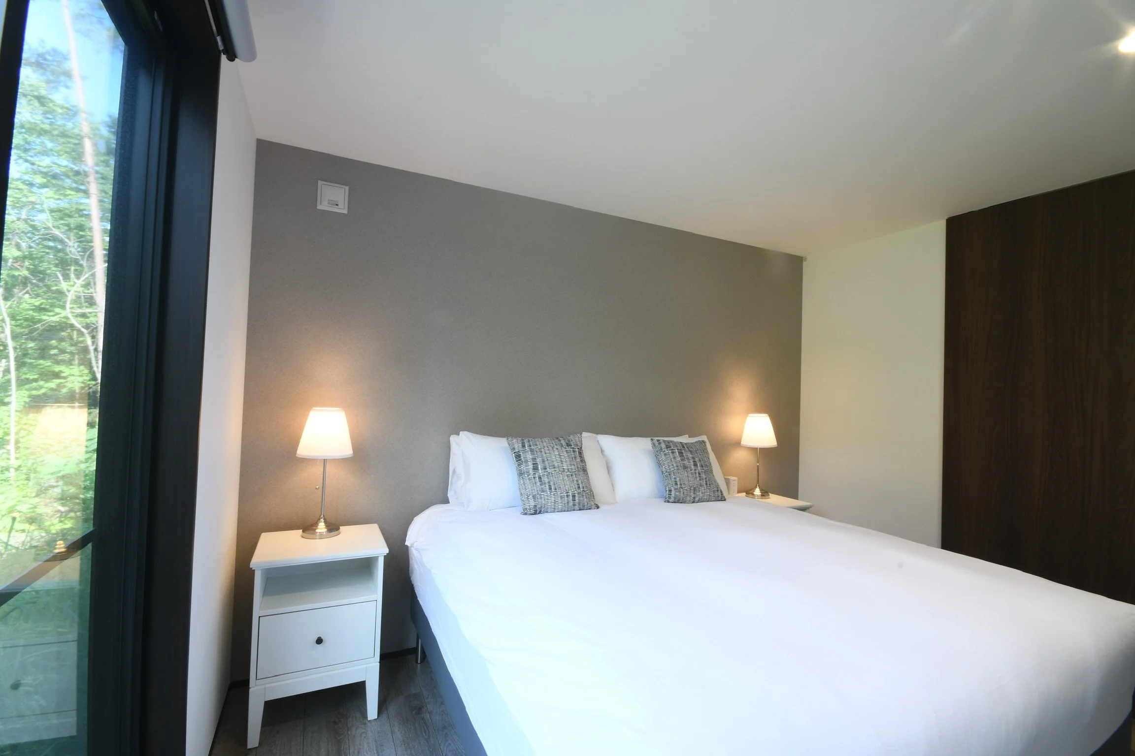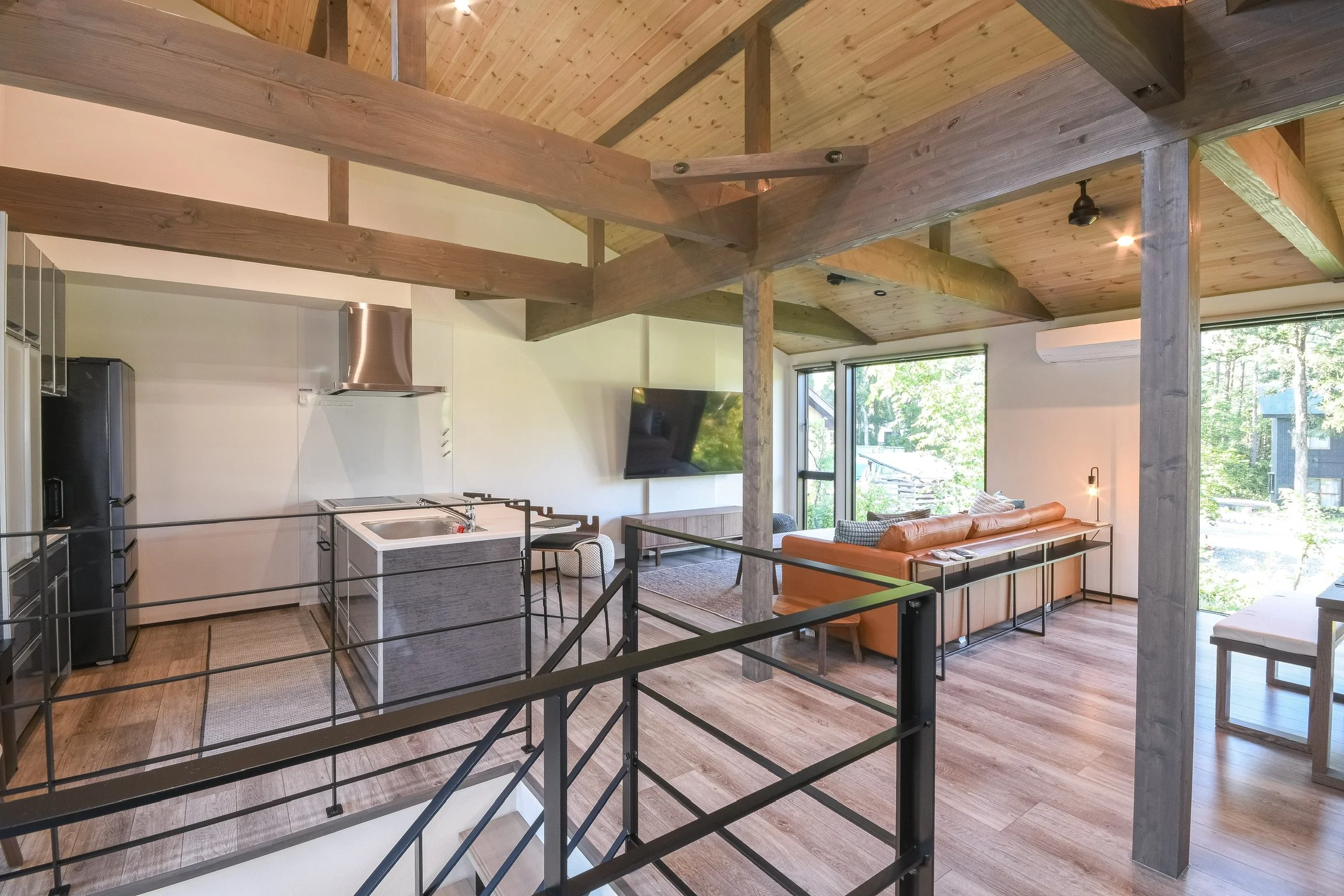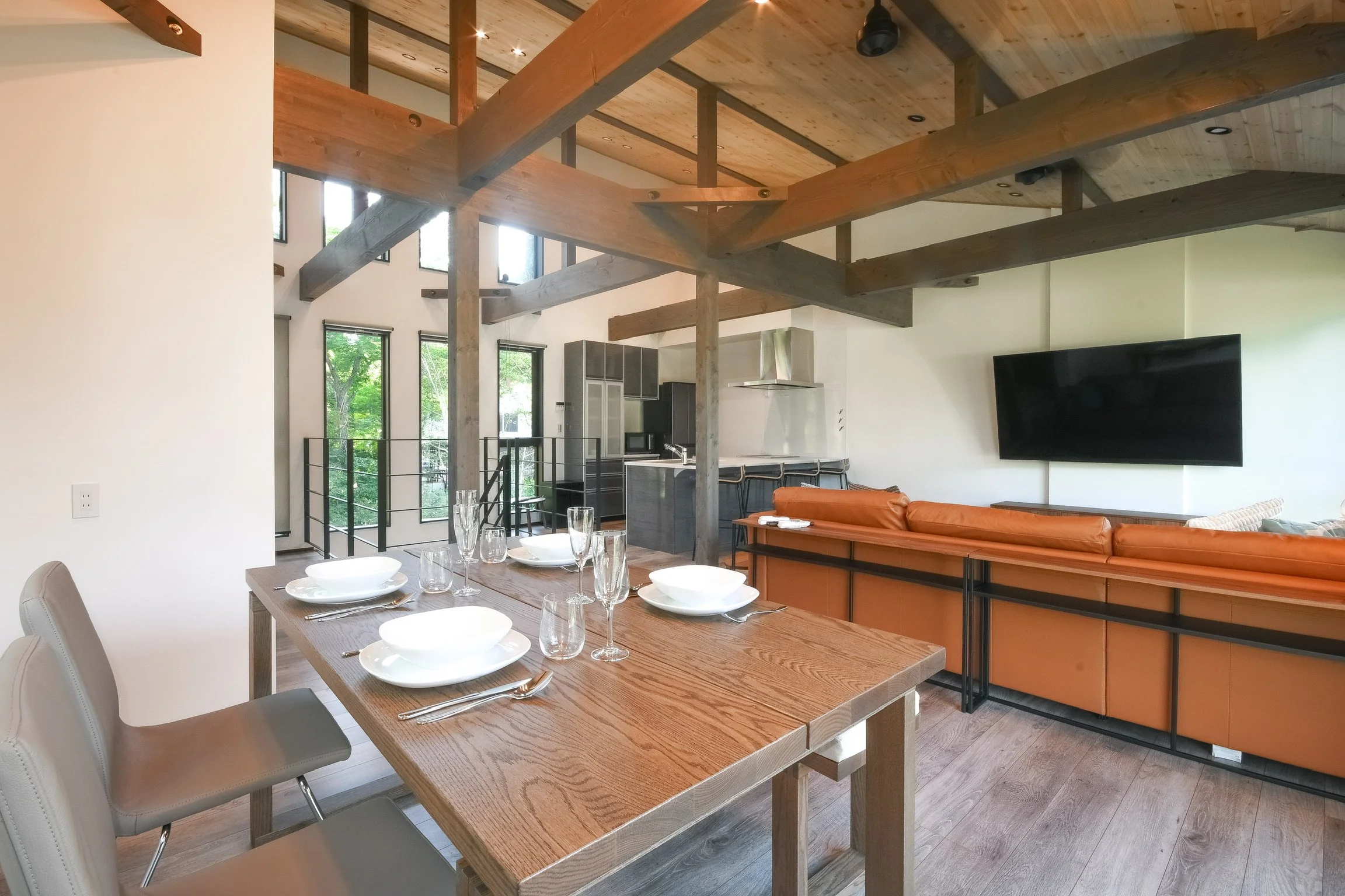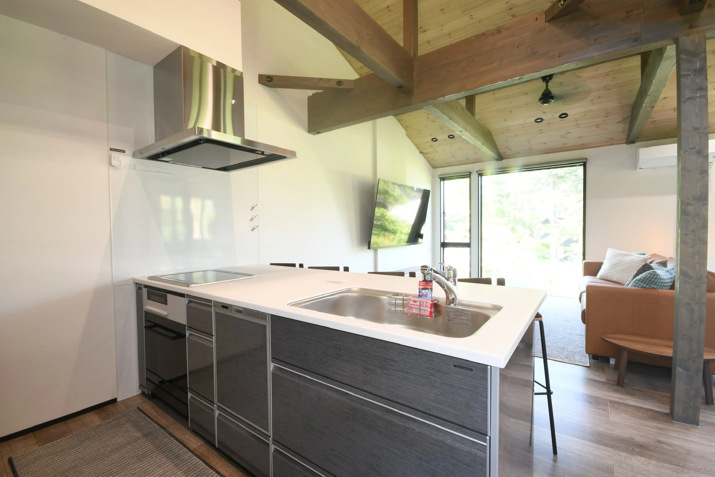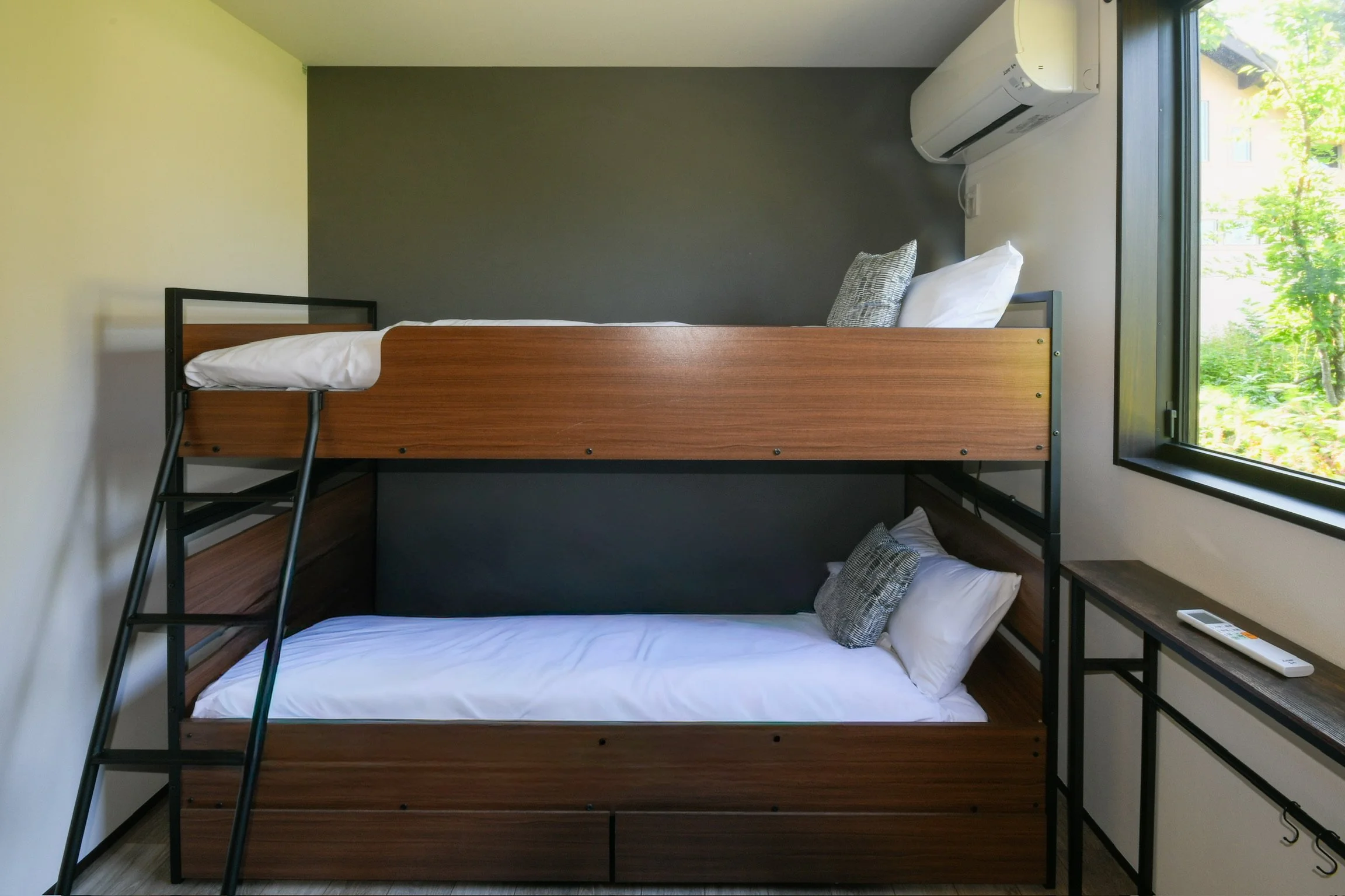Greyson B is located in a secluded spot in Misorani, yet just a few minutes walk to Echoland, the vibrant hub of Hakuba. There is parking for two cars outside the townhouse.