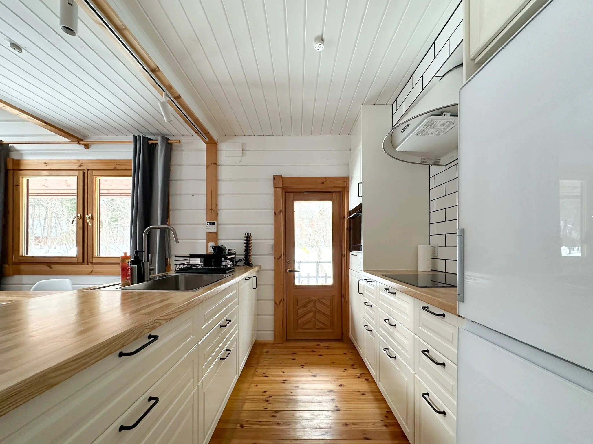 The kitchen is fully equipped with the latest appliances, including an induction cooktop, a combination microwave/oven, and a large fridge/freezer. There are also a wide range of smaller appliances such as a rice cooker, a coffee maker, a kettle and a toaster.