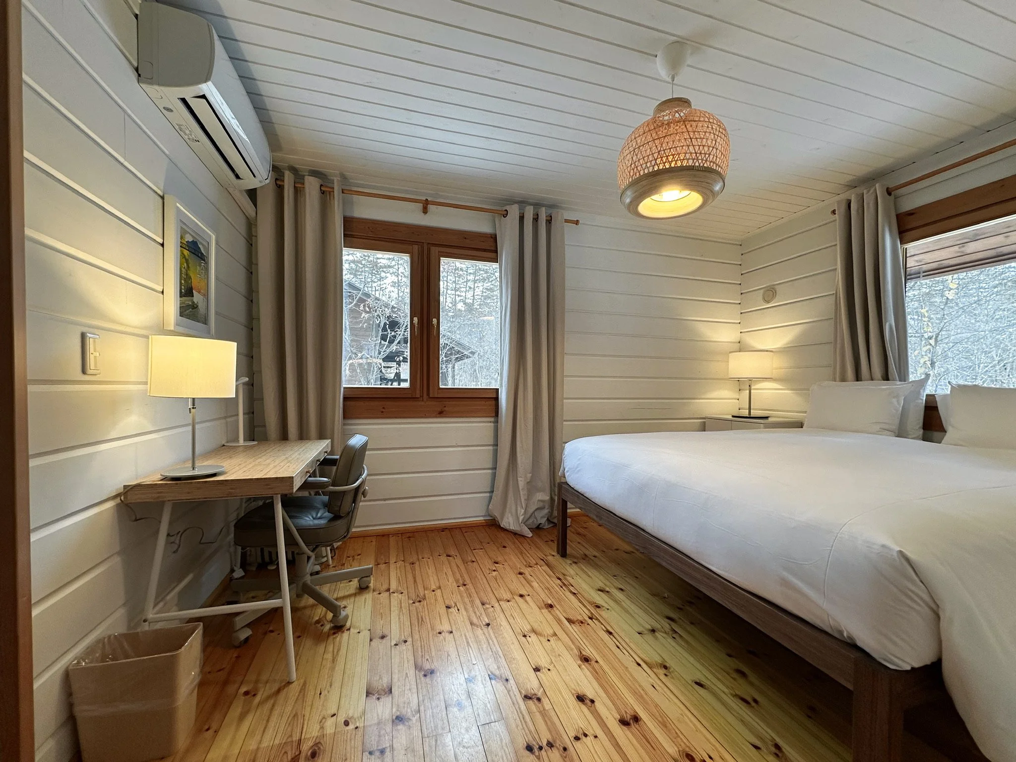 Yukiguni is a chic modern log cabin thoughtfully designed to provide a cosy haven nestled at the base of the Japanese alps.